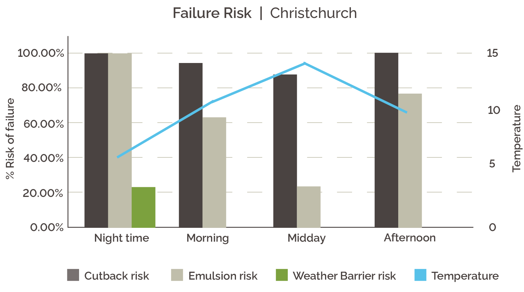 Now consider doing this on a winter night in Christchurch, where overnight temperatures can drop to around 5°C. Under those conditions, curing slows significantly, and the risk of chip loss or stripping rises - even for otherwise low‑risk seals. From a traditional sealing perspective, this would be an extreme scenario.